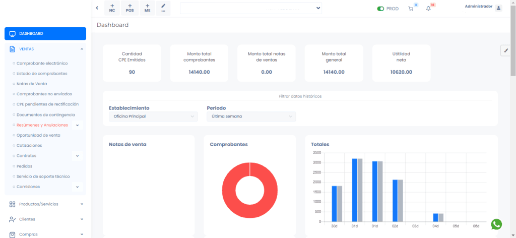 Nuestro sistema te permite crear comprobantes y emitirnos ante SUNAT, adicionalmente a esto puedes emitir notas de venta los cuales podrás administrarlas de manera interna